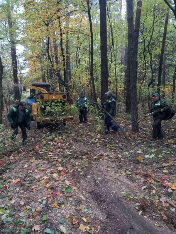 Работники УП "Зеленстрой Партизанского района г. Минска" совместно с общественностью продолжили вести работы по уборке и раскряжовке валежной древесины в лесном массиве в районе Дачного проезда ул. Ф. Скорины, ул. Подлесной, а также в лесном массиве в районе ул. Карвата.
