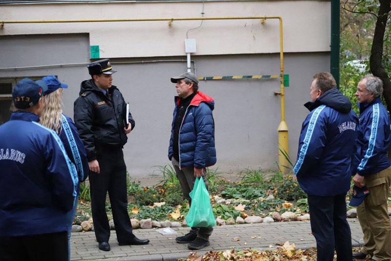 Участковый инспектор милиции Партизанского РУВД Дмитрий Борисюк отправился в профилактический рейд совместно с членами добровольной дружины ОАО "МЭТЗ ИМ. В. И. КОЗЛОВА": Виктором Царенко, Дмитрием Неверовичем, Владимиром Савчуком, Геннадием Пасюком и Викторией Бруцкой. Командир дружины - Юрий Ремберг.