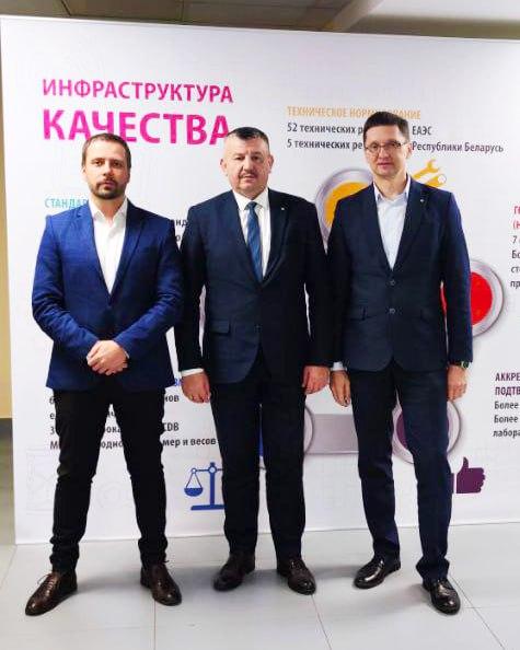 Заместитель генерального директора – директор по качеству продукции и техническому сервису Иван Бакун, заместитель директора по качеству продукции и техническому сервису Валерий Терешко и начальник бюро управления качеством и взаимодействия с поставщиками Александр Сорва принимают участие в заседании форума "Качество во всем – залог конкурентоспособности продукции и процветания государства".