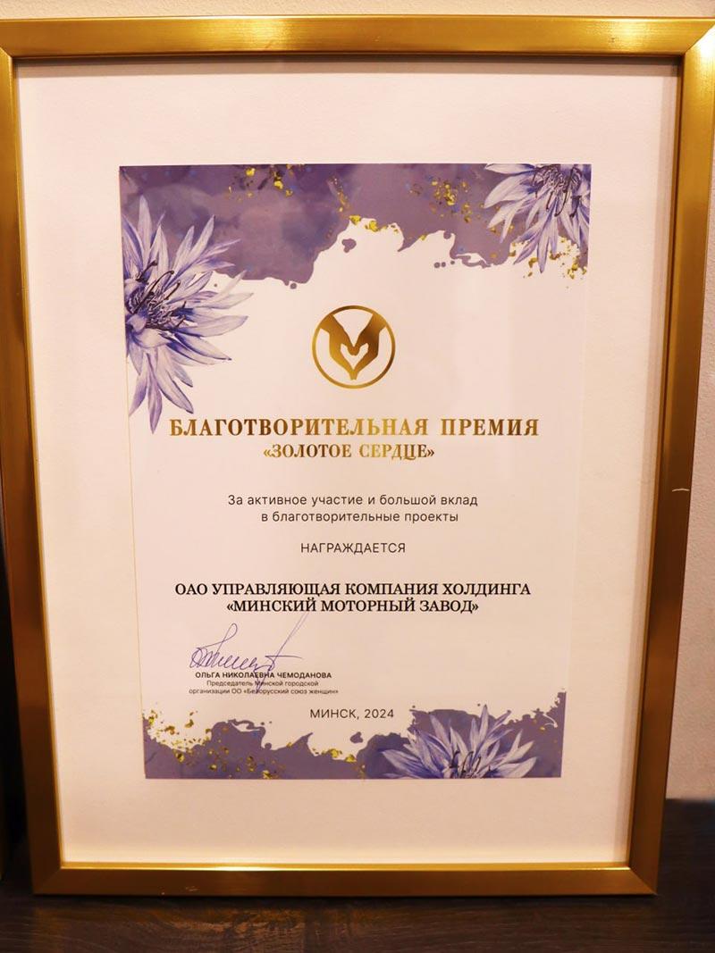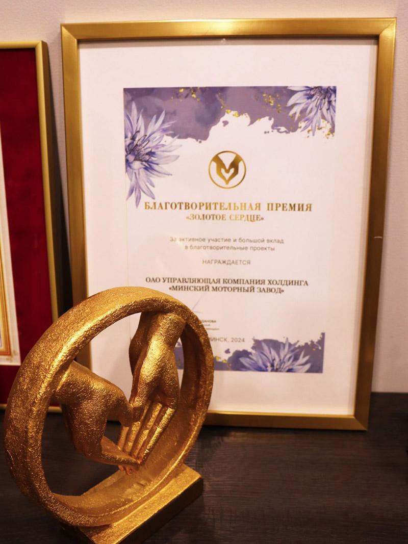 Награду генеральному директору ММЗ Александру Ботвиннику торжественно вручила председатель Белорусского союза женщин Ольга Шпилевская на «Васильковом балу».