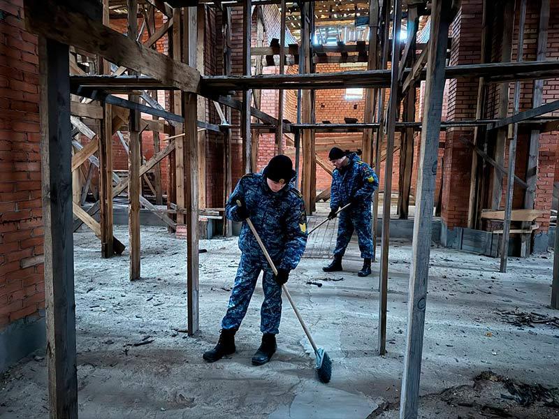 Организован трудовой десант в составе лицеистов, которые помогли навести порядок на территории постройки Михайловской церкви.