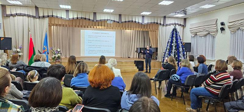 Перед законными представителями выступили: психолог Центра дружественного подросткам "Визави" Партизанского района г.Минска УЗ "9-я городская детская поликлиника" и психолог ГУО "Социально- педагогический центр Партизанского района г.Минска".