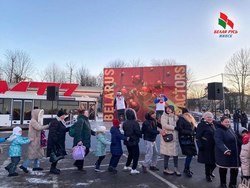«Хоровод единства» стал неотъемлемой частью церемонии зажжения новогодних огней на ёлке Минского тракторного завода.