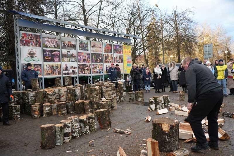 Николай Поляков: наши традиции должны сохраняться и передаваться. После того как прошли соревнования по колке дров среди журналистов с участием Президента, подумали, что это будет интересно. Тем более тракторный завод, который выпускает белорусский топор, находится в Партизанском районе. Это должно стать нашим брендом!