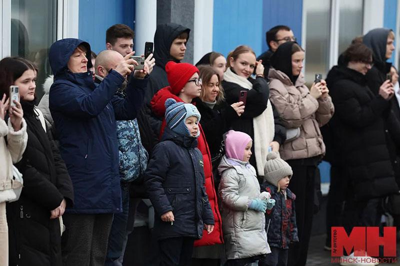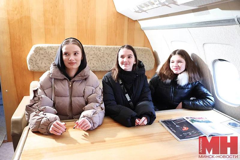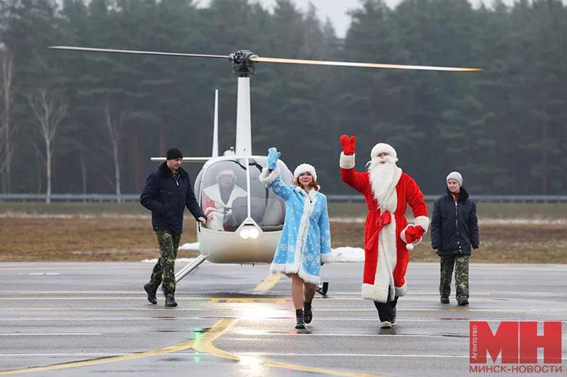 По плану детей ожидала обзорная экскурсия над Минском и Минским районом на настоящем вертолете, однако погода оказалась нелетной. Но Снегурочка с Дедом Морозом прибыли по воздуху.