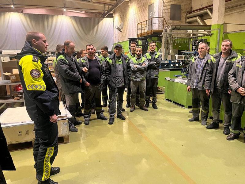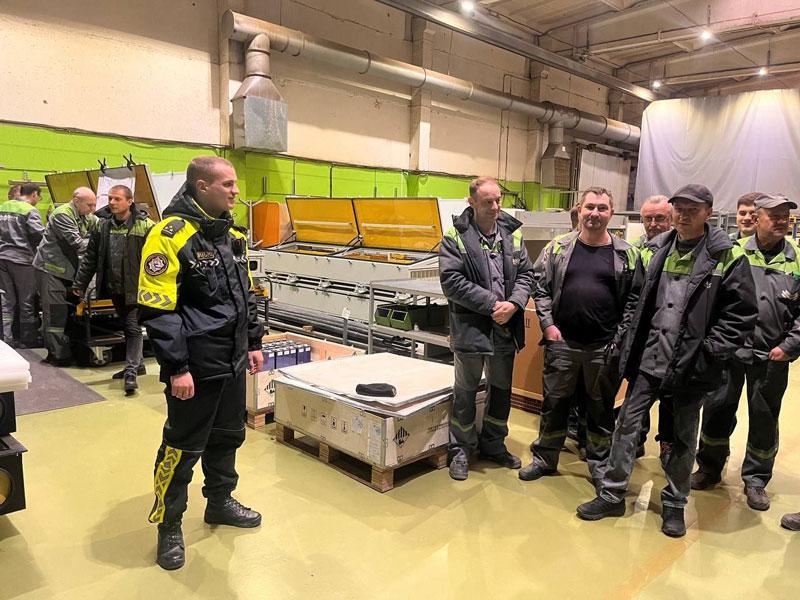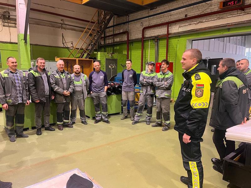 Перед работниками предприятия выступал Дмитрий Каленкович, сотрудник отдела ГАИ РУВД администрации Партизанского района г.Минска.
