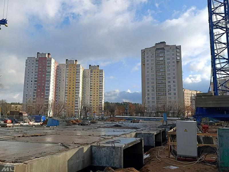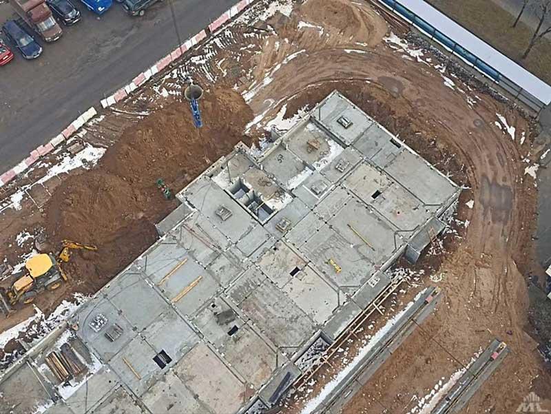 На этой территории уже смонтирован цоколь первого строящегося 19-этажного дома, который будет состоять из двух секций. Его возводят для горожан, чье жилье попало под снос. На объекте завершают формирование входов в подвал. Скоро начнут монтировать первый этаж.