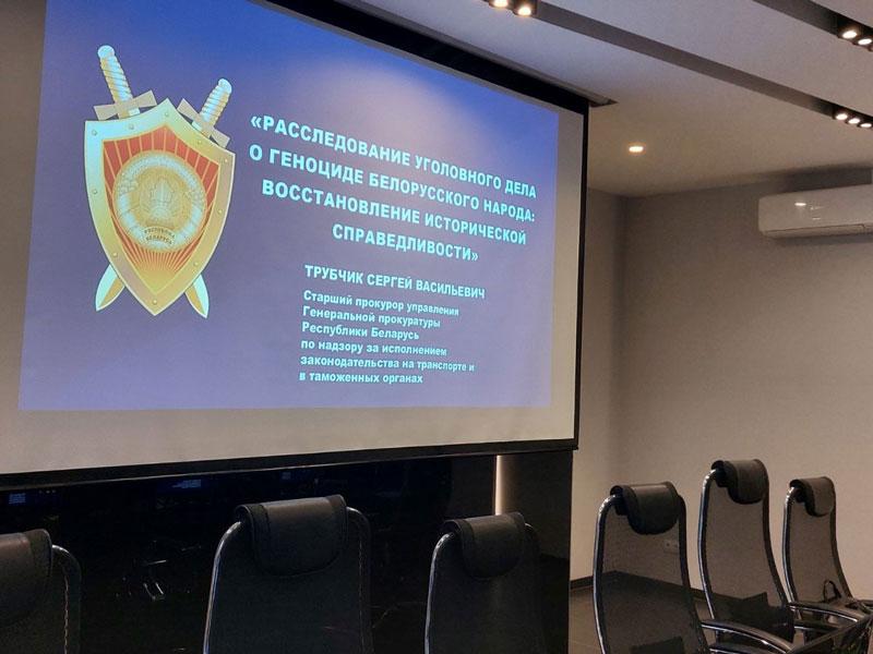 В УП «МИНСКМЕТРОСТРОЙ» состоялась встреча коллектива аппарата управления со старшим прокурором управления Генеральной прокуратуры Республики Беларусь по надзору за исполнением законодательства на транспорте и таможенных органах Трубчиком С.В. по теме: «Расследование уголовного дела о геноциде Белорусского народа: восстановление исторической справедливости».