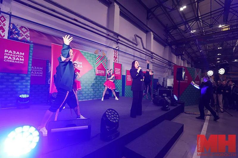 Перед работниками завода выступили фольклорная группа «Купалинка», солисты Большого театра Беларуси Марта Данусевич и Тарас Присяжнюк, певицы Гюнешь и Ирина Дорофеева. Заводчане танцевали и подпевали артистам.