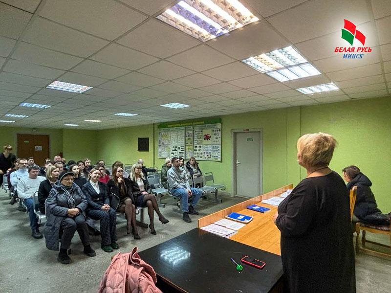 Председатель Партизанской «Белой Руси», депутат Мингорсовета Валентина Довгалёва встретилась с трудовым коллективом подразделения Трест 15 СПЕЦСТРОЙ.