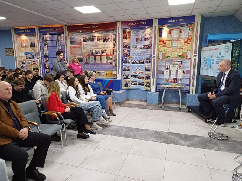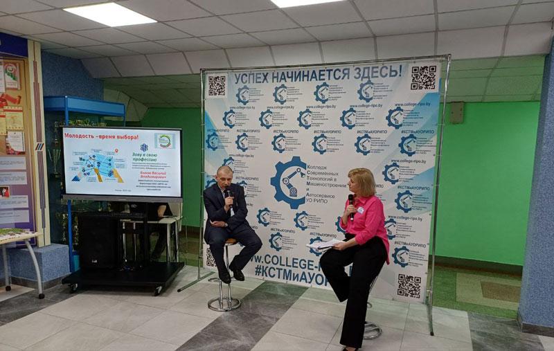 В филиале КСТМиА УО РИПО в рамках проекта "ШАГ", "Молодость –время выбора!Зову в свою профессию" прошла встреча с Быковым Василием заместителем технического директора ОАО "МТЗ" по технологическому обеспечению производств, выпускником филиала.