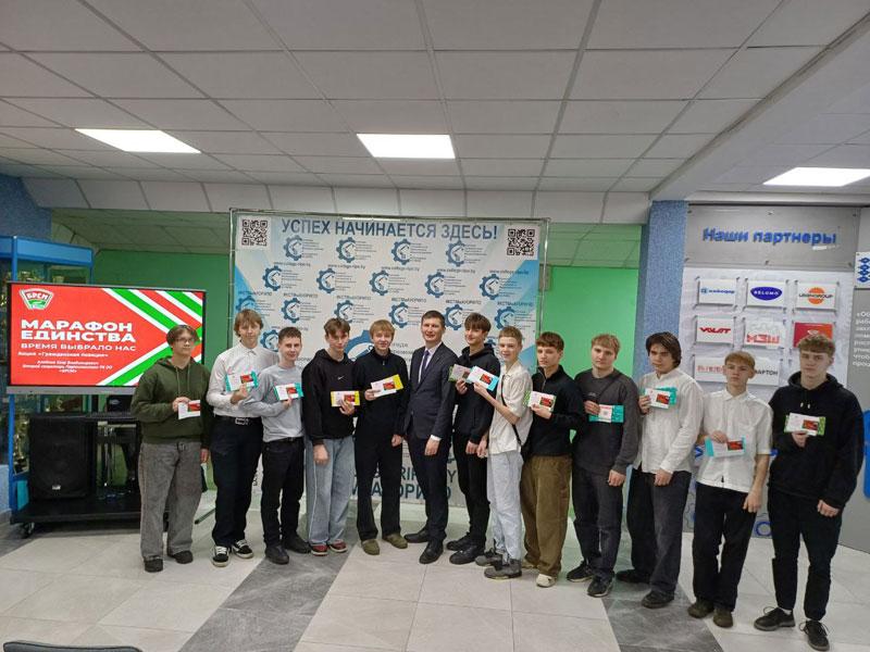 В филиале КСТМиА УО РИПО в рамках "Марафона Единства" состоялась акция "Гражданская позиция" по вручению учащимся коледжа билетов ОО "БРСМ".