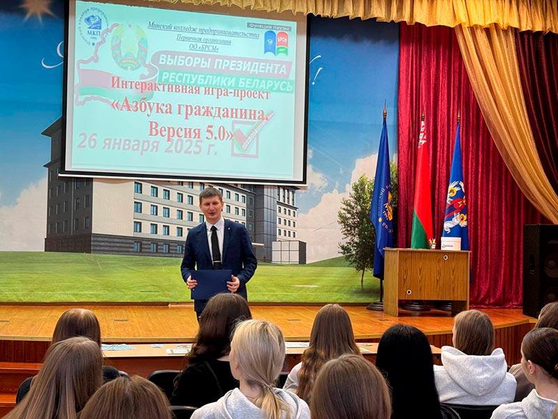 В Минском колледже предпринимательства состоялся проект «Азбука гражданина», в рамках которого учащиеся познакомились с особенностью электоральной кампании по выборам Президента Республики Беларусь и смогли почувствовать себя в роли избирателей, членов участковых избирательных комиссий, наблюдателей и других.