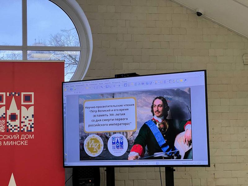 Заседании Исторического Клуба прошло на базе Русского Дома в Минске. Это мероприятие было приурочено к 300-летию со дня смерти великого императора Петра I.