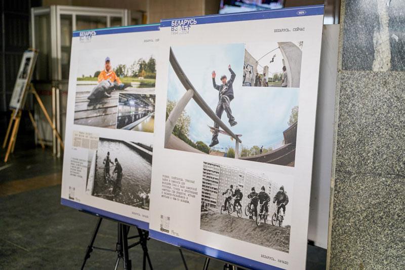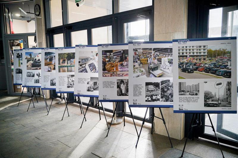 На центральной проходной Минского тракторного завода - вернисаж проекта БЕЛТА "Беларусь. Взлет" в рамках республиканской общественно-культурной акции "Марафон единства".