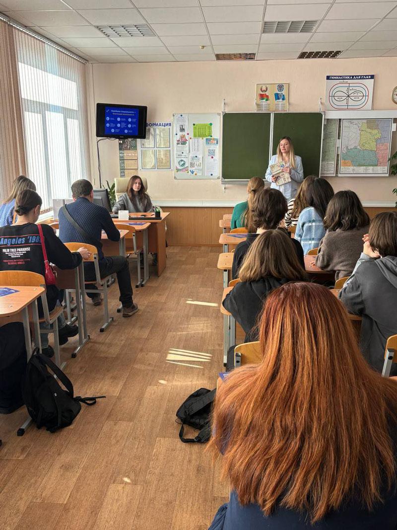 Заместитель директора по ПО Кухарчик А.Е. познакомила учащихся школ Партизанского района с колледжем, современной технической базой, которой располагает учреждение образования сегодня, рассказала об условиях поступления в 2025 году.