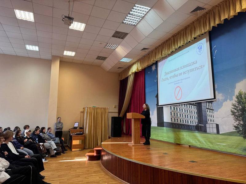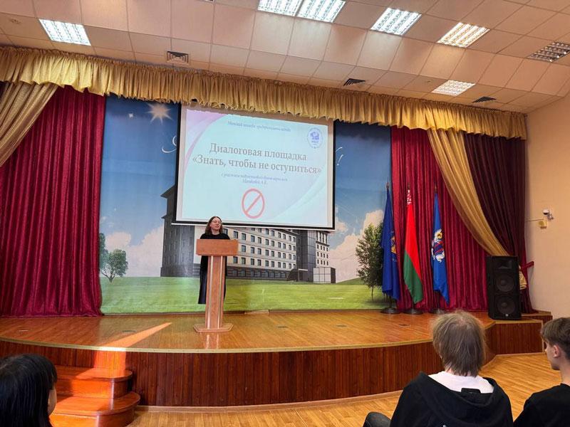 Диалоговая площадка "Знать, чтобы не оступиться" прошла в Минском колледже предпринимательства в рамках Недели правовых знаний️. Перед молодёжью выступила подростковый врач-нарколог Матвеева А.А., которая поделилась современными научными исследовании по теме курения и вейпов. Специалист подробно остановилась на погубном воздействии курения и парения на организм человека, психологических и поведенческих изменениях при злоупотреблении.