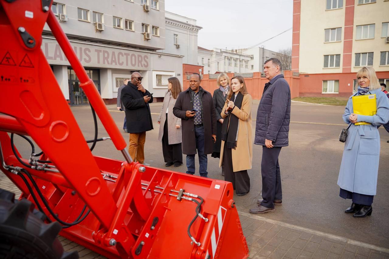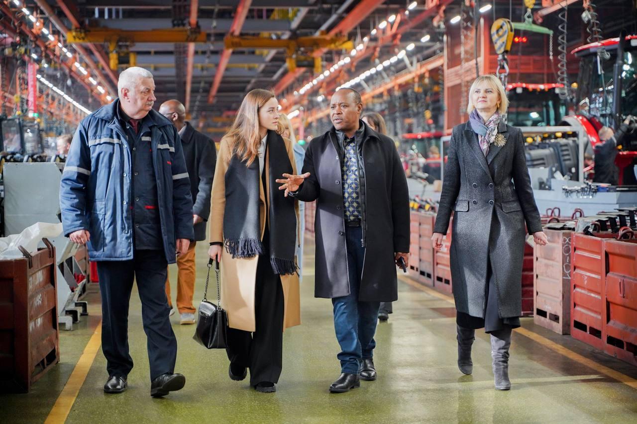 На Минском тракторном заводе - Чрезвычайный и Полномочный Посол Республики Кения в Российской Федерации и Республике Беларусь Питер Мутуку Матуки. Гости посетили выставку тракторной техники, корпус сборки тракторов и музей МТЗ. Цель визита – ознакомиться с техникой BELARUS, чтобы содействовать поставкам продукции на рынок Кении.