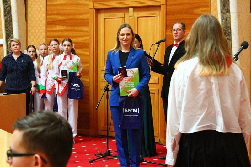 В преддверии Дня Конституции Республики Беларусь в Национальной библиотеке Республики Беларусь состоялась торжественная церемония вручение паспортов талантливой молодежи Партизанского района г.Минска. Глава Администрации Партизанского района г.Минска Николай Поляков, депутат Палаты представителей Вадим Гигин, прокурор Партизанского района Виктор Проневич, начальник Партизанского РУВД Сергей Дроздов, депутат Мингоросвета депутатов Александр Скорина, первый секретарь Партизанского РК ОО «БРСМ» Юлия Решетнева вручили школьникам их первые паспорта.