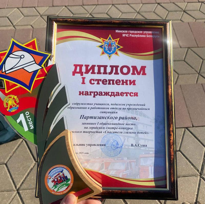 По итогам конкурса содружество учащихся, педагогов учреждений образования и работников районного отдела по чрезвычайным ситуациям Партизанского района стало ПОБЕДИТЕЛЕМ.