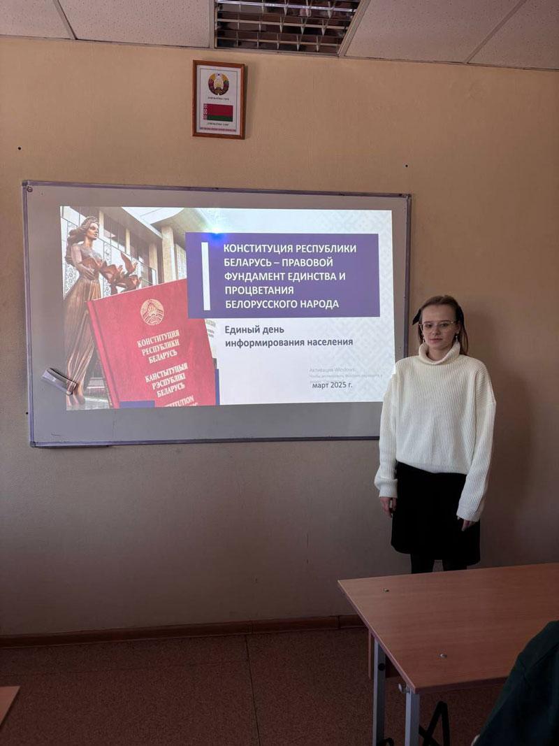 Единый день информирования в Минском колледже предпринимательства прошёл по общей теме: "КОНСТИТУЦИЯ РЕСПУБЛИКИ БЕЛАРУСЬ – ПРАВОВОЙ ФУНДАМЕНТ ЕДИНСТВА И ПРОЦВЕТАНИЯ БЕЛОРУССКОГО НАРОДА".