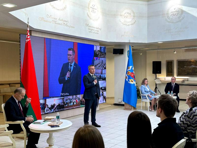 В диалоге также активно участвовали представители трудовых коллективов и студенческой молодежи, в том числе учащиеся УО "Минский государственный лингвистический университет"