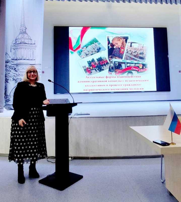 Жанна Евгеньевна представила опыт работы гимназии по теме «Актуальные формы взаимодействия административной команды с педагогическим коллективом в процессе гражданско-патриотического воспитания молодежи».