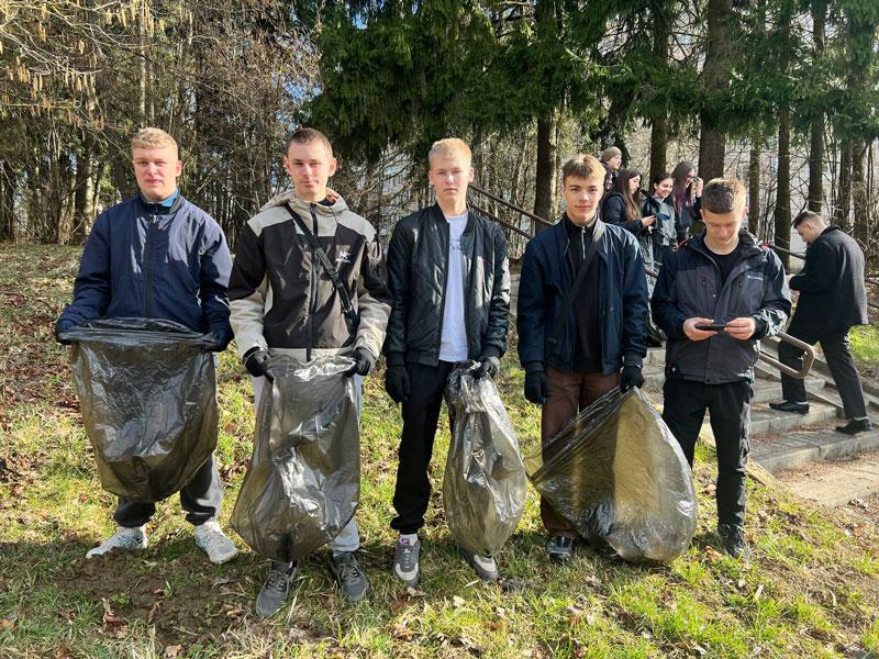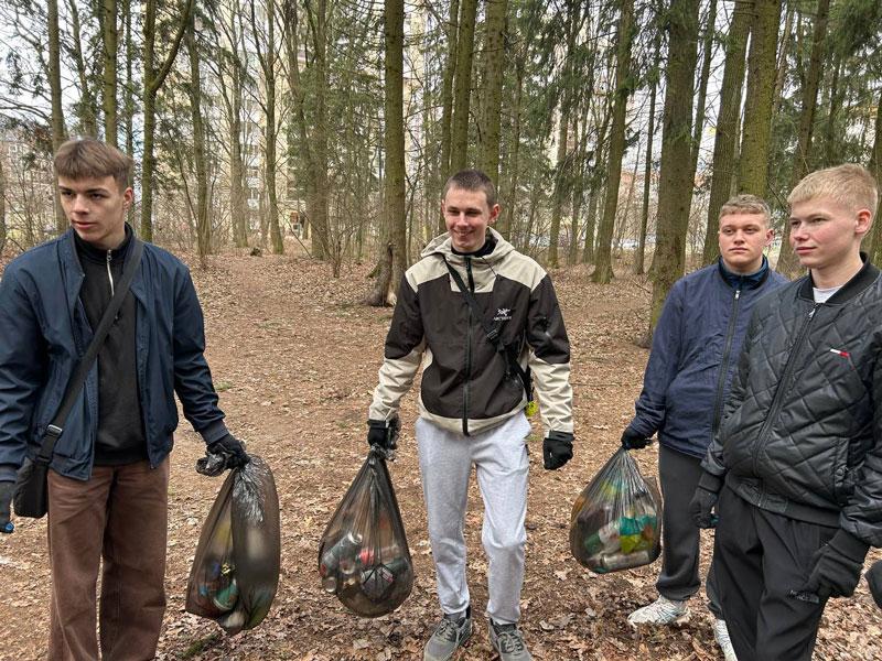 В лесопарке «Медвежино» состоялся плогинг-забег. Партизанский район на забеге представила команда учащихся машиностроительного колледжа «Зеленый десант».