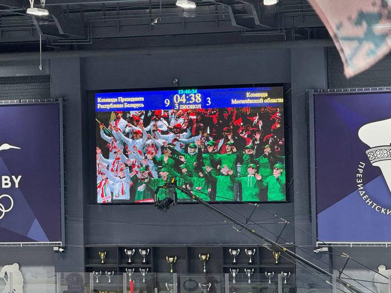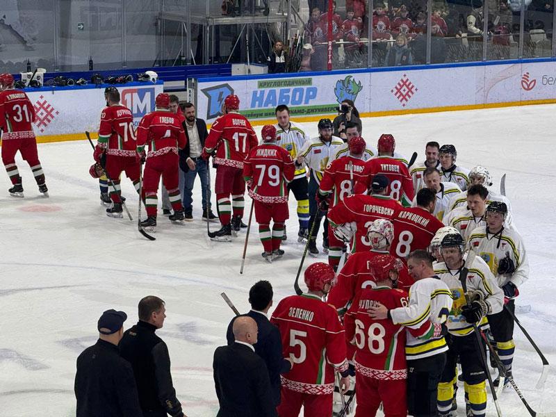 На льду "Олимпик-Арены" в Минске команда Главы государства в первом полуфинальном поединке победила команду Могилевской области со счетом 9:3.