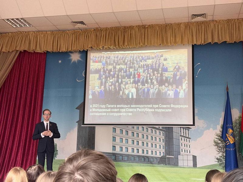 Состоялась встреча с учащейся молодёжью Минского колледжа предпринимательства и Молодежным советом при Совете Республики Национального собрания Республики Беларусь.