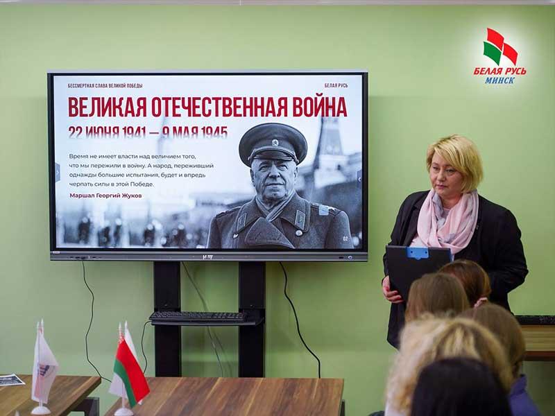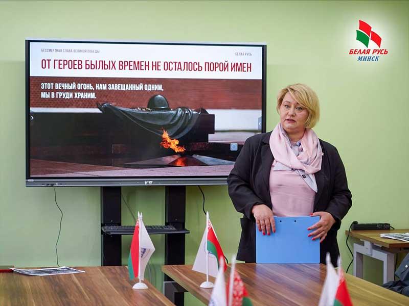 Председатель Партизанской «Белой Руси», депутат Мингорсовета Валентина Довгалёва провела патриотическую встречу с учащимися и преподавателями Минского архитектурно-строительного колледжа в рамках проекта «Бессмертная слава Великой Победы».