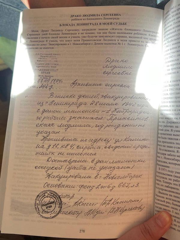 Людмила Сергеевна рассказала ребятам, как она прошла этот нелёгкий путь, как попала в дом малютки, как оказалась в приёмной семье в Новосибирске, как пережила тяжёлые годы ВОВ, как познакомилась со своим мужем, с которым они прожили 52 года в любви и согласии. Показала фронтовые письма, медали за отвагу, медаль блокадницы.