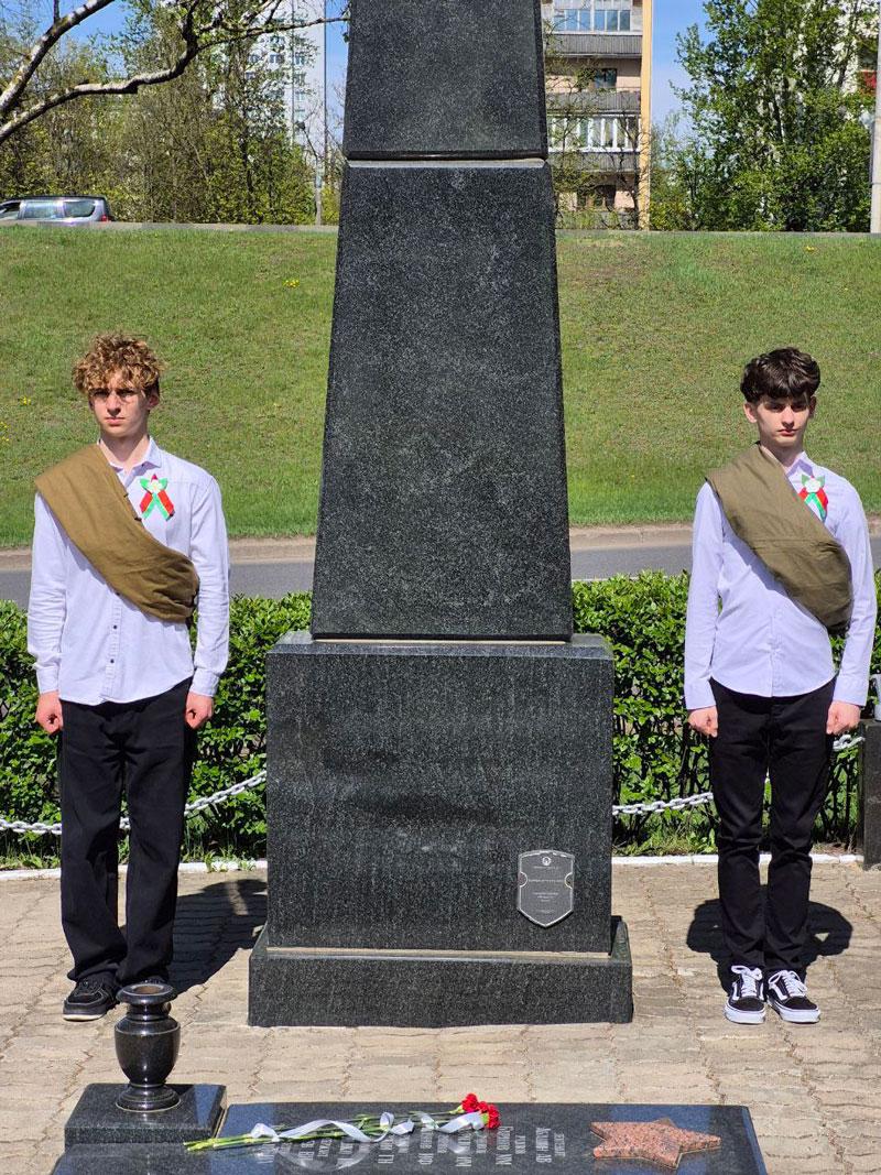 Почетный Пост парни держали у памятника Героям танкистам 5-й гвардейской танковой армии и артиллеристам, погибшим при освобождении г. Минска 3 июля 1944 года.