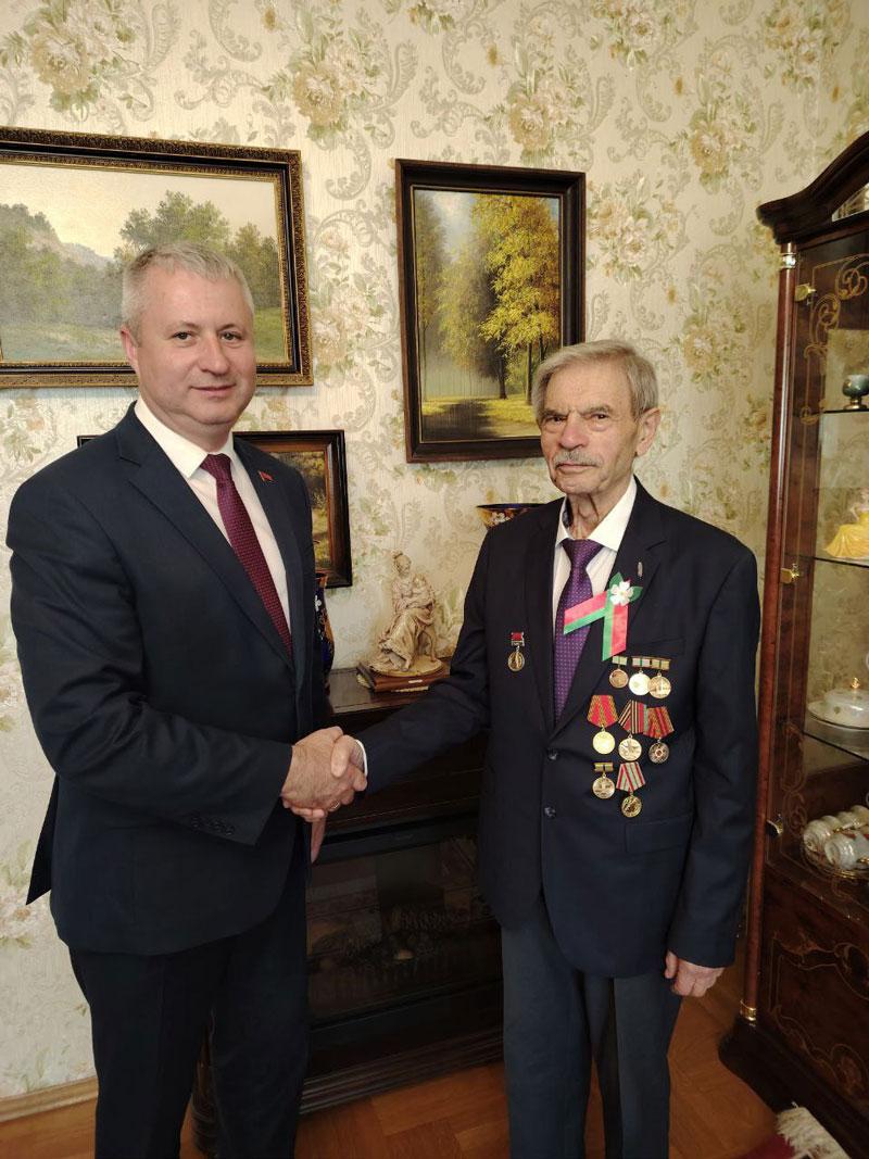 В преддверии празднования 80-й годовщины Великой Победы глава администрации Партизанского района г.Минска Николай Поляков, начальник управления социальной защиты Светлана Петрова с поздравлениями и с памятными подарками посетили жителя блокадного Ленинграда Аркадия Борисовича Либенсона.