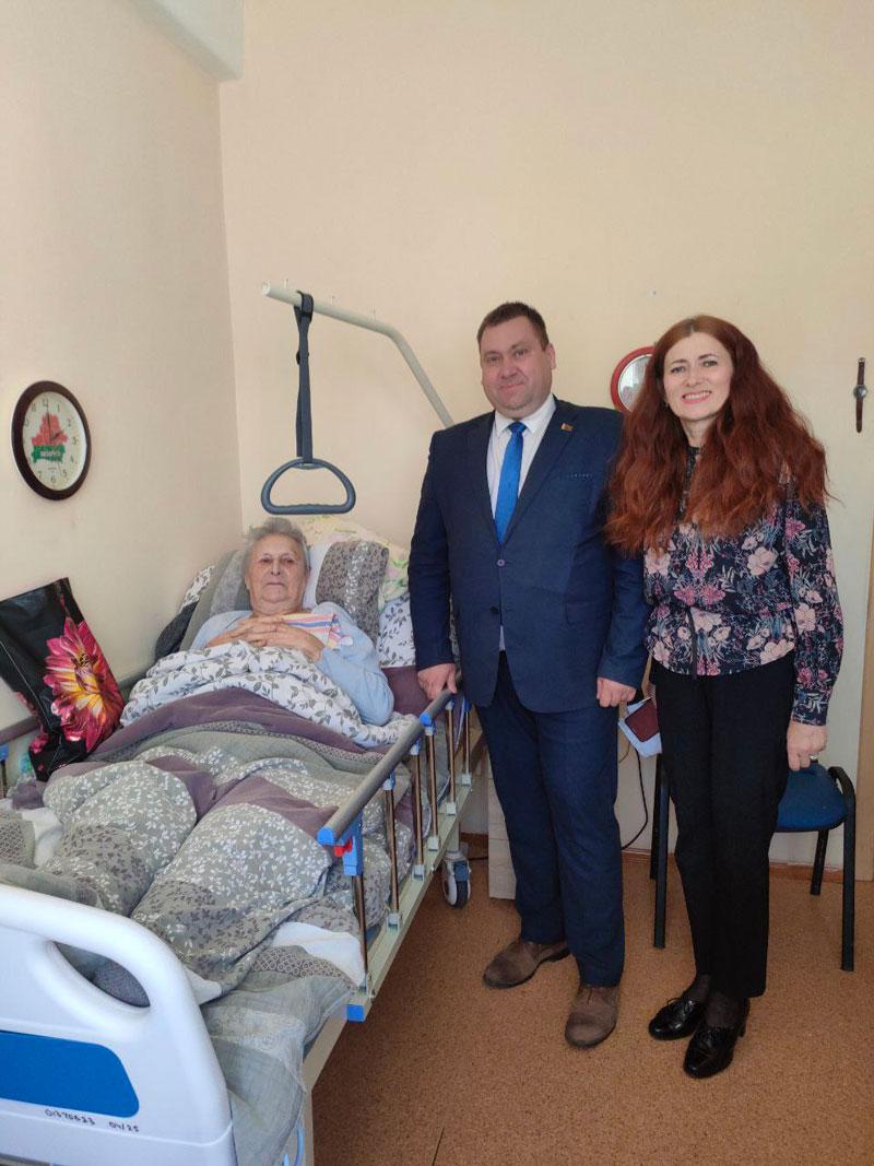 Первый заместитель главы администрации Денис Капитан, заместители главы Владимир Лебедь и Людмила Филиппович, а также начальник управления социальной защиты Светлана Петрова поздравили участников Великой Отечественной войны.