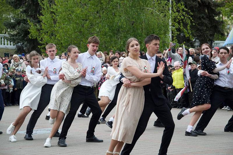 Ярким моментом праздника стала патриотическая акция "Вальс Победы" символично объеденившая под звуки майского вальса 80 юношей и девушек из числа учащейся и работающей молодежи Партизанского района.