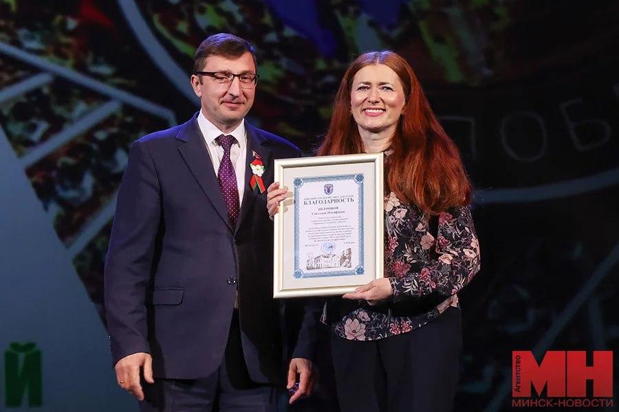 За развитие ветеранского движения, значительный вклад в героико-патриотическое воспитание молодежи и в связи с 80-летием Победы БЛАГОДАРНОСТЬЮ МИНГОРСОВЕТА награждена ПЕТРОВА СВЕТЛАНА , начальник управления социальной защиты населения администрации Партизанского района.