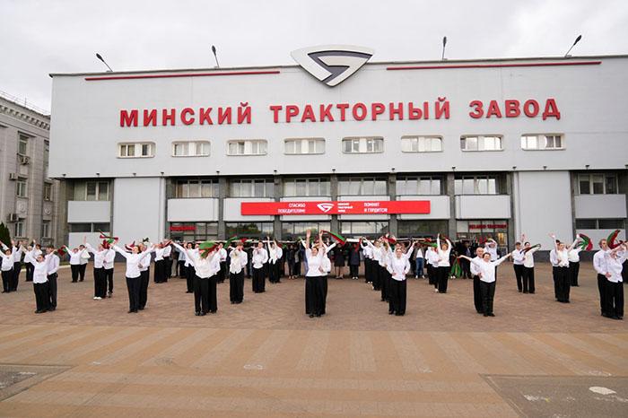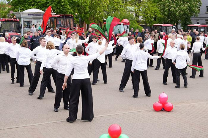 Перед заводчанами выступили артисты Дворца культуры МТЗ. Открыл мероприятие "Вальс Победы", в котором приняли участие 40 танцевальных пар.