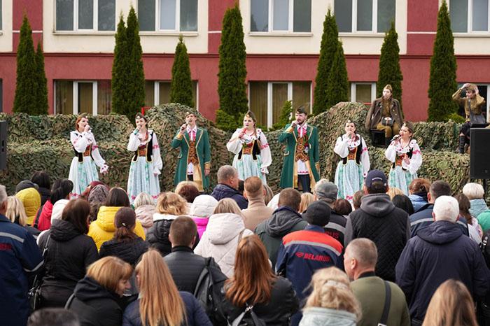 Торжественный концерт, посвященный 80-летию Великой Победы, состоялся на Выставочной площади Минского тракторного завода.