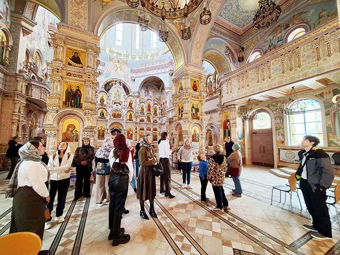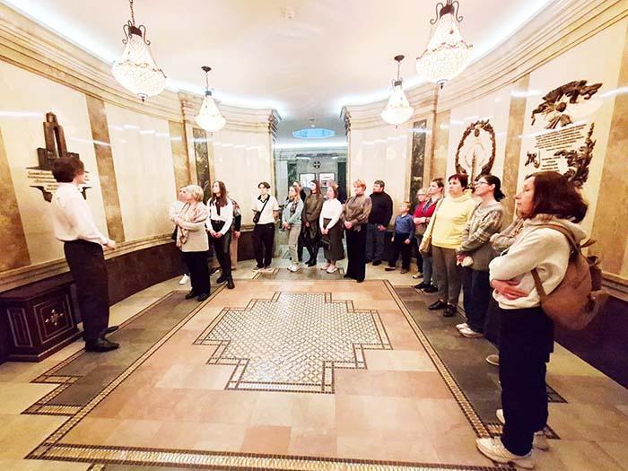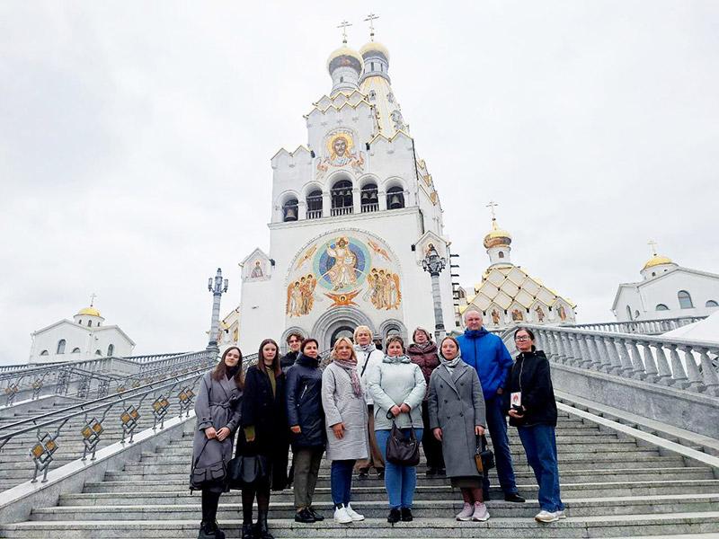 Началось духовное мероприятие с экскурсии по комплексу, после коллеги побывали в Крипте, «Музее памяти» и Храме праздничного Богослужения.