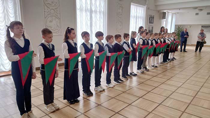Символ принадлежности к пионерам Беларуси - галстук - ребятам повязали представители посольств России 🇷🇺, Венесуэлы 🇻🇪, Кубы 🇨🇺, руководители общественных объединений Республики Беларусь