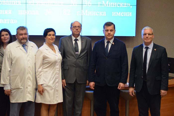 В рамках реализации этого направления состоялась церемония подписания Договоров о сотрудничестве между Больницей и учреждениями образования «Средняя школа №182 имени Владимира Карвата» и «Гимназия №36 г.Минска». Предметом настоящего договора является сотрудничество по организации и осуществлению профориентационной работы с учащимися школы.