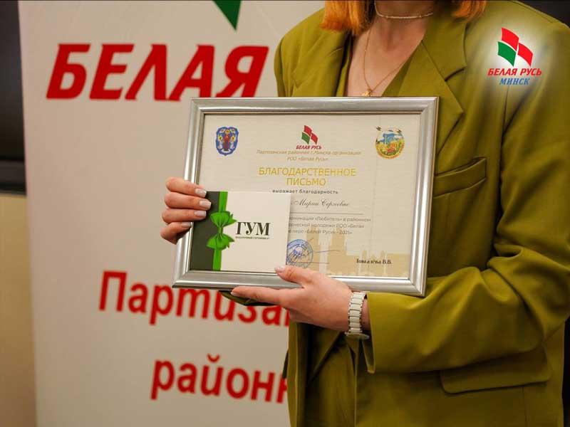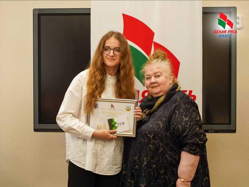 «Ваши работы – это не просто тексты, а искренние размышления о жизни страны, её прошлом и будущем. Именно такие голоса нужны современной Беларуси!» – отметила во время вручения наград председатель Партизанской районной организации «Белая Русь», депутат Мингорсовета Валентина Довгалёва.