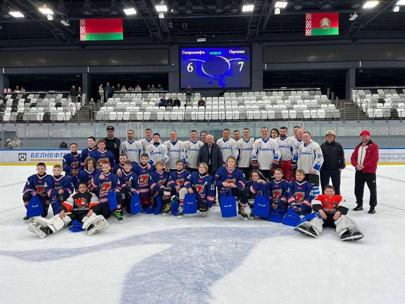 Товарищеский матч между юными хоккеистами команды «Партизан» и сотрудниками компании «Газпромнефть-Белнефтепродукт» состоялся на базе ФСК «Олимпик арена». Игра закончилась победой детской команды со счетом 7:6.