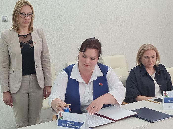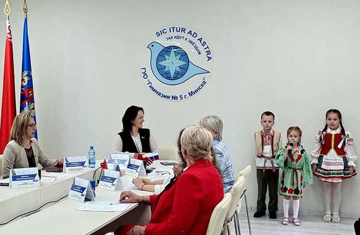 Модератором телемоста выступила Ольга Евгеньевна Смирнова, заместитель председателя комитета по образованию Мингорисполкома.
