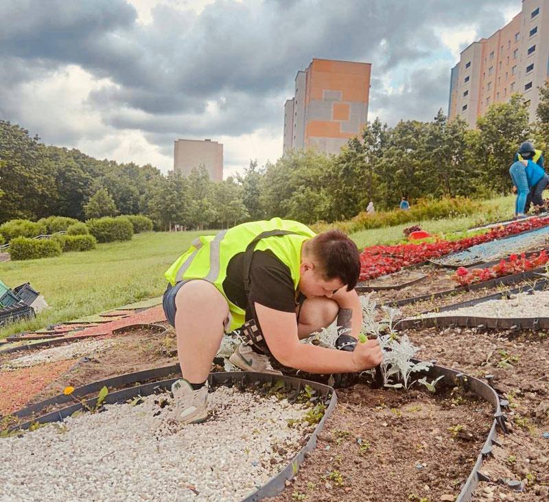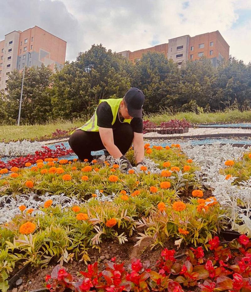 Зеленстрой Партизанского озеленяет Слепянскую водную систему: свежие цветы и хорошее настроение! Сотрудники предприятия высаживают яркие и красочные цветы в клумбу, расположенную в живописных границах Слепянской водной системы.