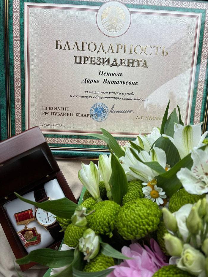 Она из рук Президента Республики Беларусь Александра Лукашенко получила первую и важную награду — Благодарность. Этот момент стал значимым событием не только для Дарьи, но и для нашей Академии связи.