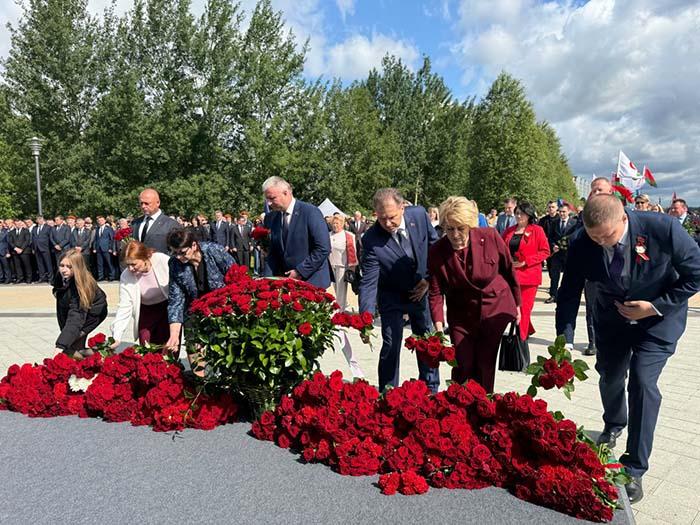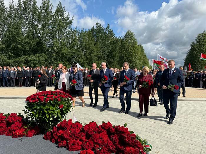 Делегация Партизанского района во главе с руководителем администрации Николаем Поляковым возложила цветы к мемориалу в Тростенце.