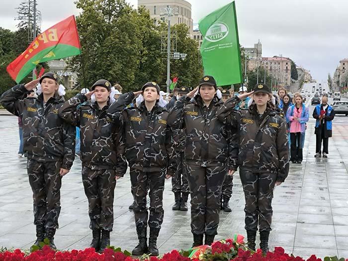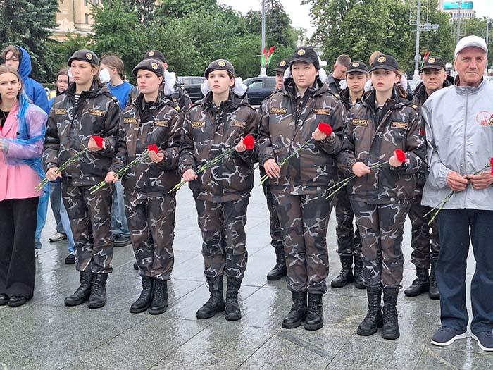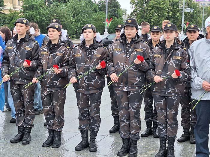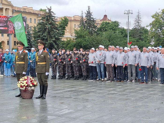 Возложение цветов к монументу на Площади Победы стало искренним выражением благодарности и уважения к тем, кто ценой своей жизни отстоял мирное небо над головой.
