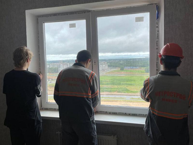 Студенческий отряд в области строительства "Бригада качества-5.0" имени Героя Советского Союза Василия Захаровича Коржа, в котором 11 парней и 3 девушки из Минского колледжа предпринимательства продолжает трудовой семестр после учёбы на строительном объекте СМУ #1 УП "Минскметрострой".
